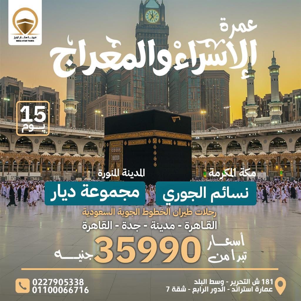 احلامك صارت حقيقه علي أرض الواقع . رائدون في رحلات العمرة دع حلمك يتحقق مع ميجا استار للسياحة